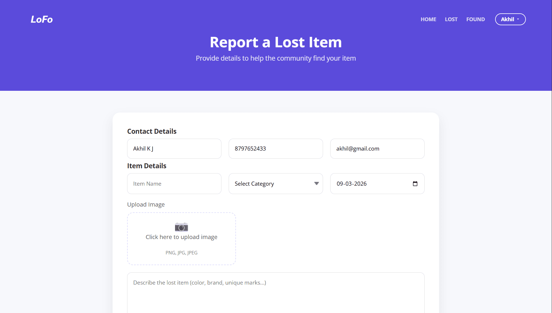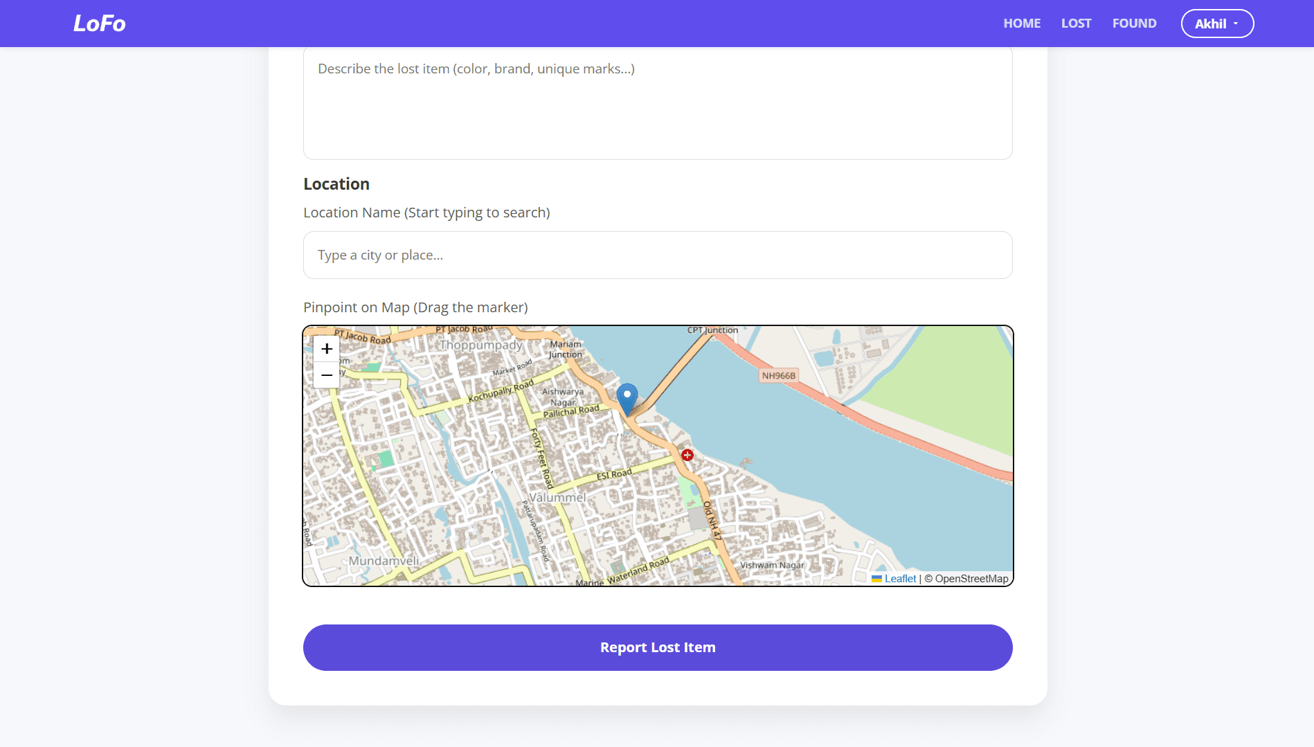 "LoFo" is an intuitive community-driven platform tailored to streamline the recovery of lost belongings. With its interactive mapping and secure verification tools, LoFo empowers users to easily report items, connect with finders, and bring lost possessions back home.